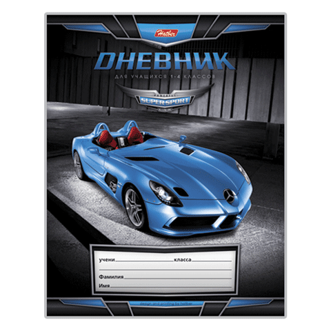 Школьный дневник для учащихся 1-4 классов. Стильная обложка из мелованного картона с выборочным лакированием, которое удачно подчеркивает оригинальное изображение автомобиля, украшающее обложку.